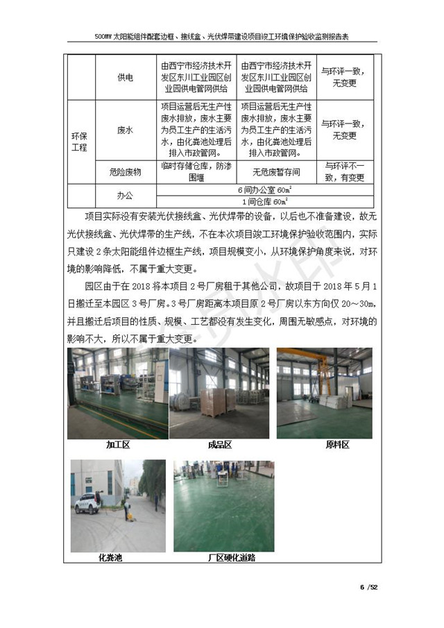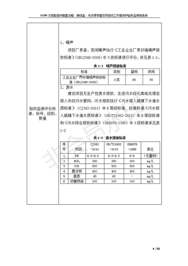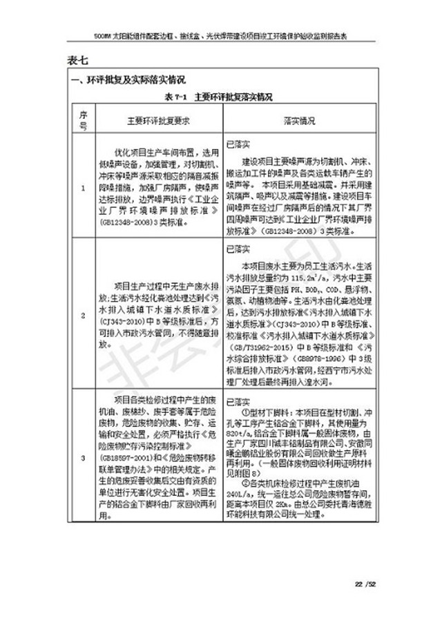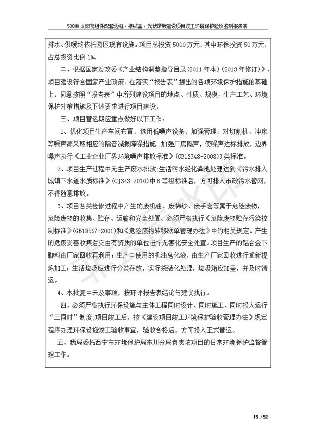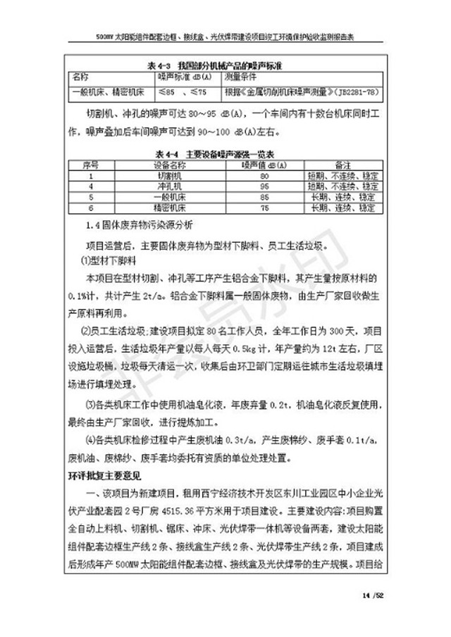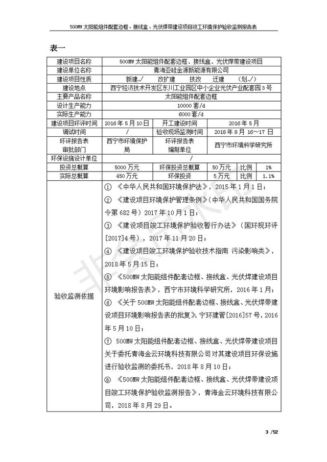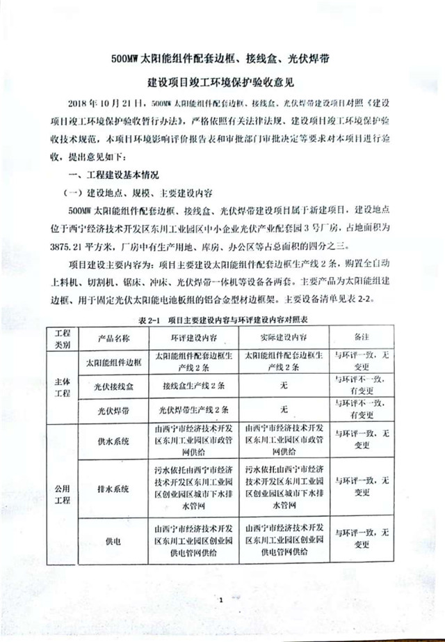500MW太陽能組件配套邊框、接線盒、光伏焊帶建設(shè)項目竣工環(huán)境保護(hù)驗收監(jiān)測報告表公示