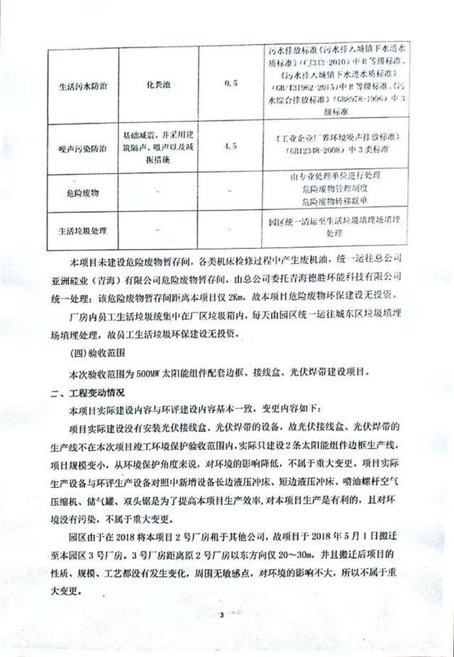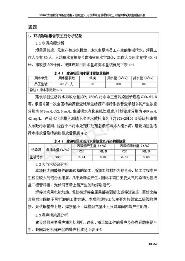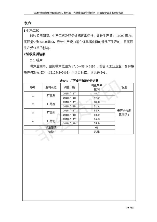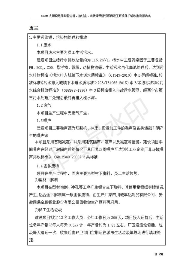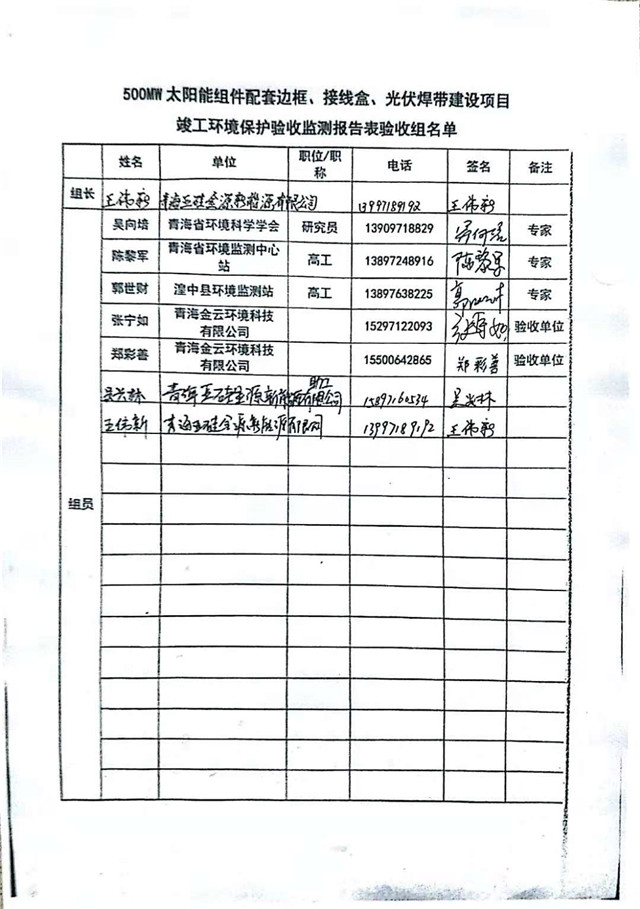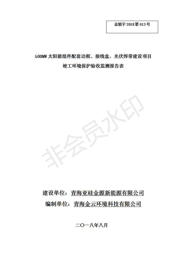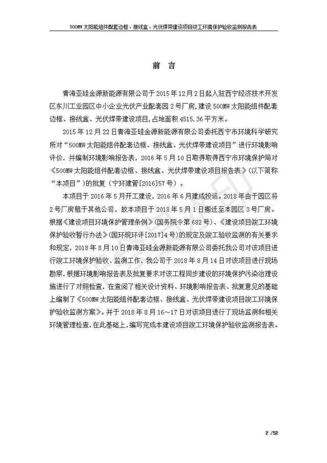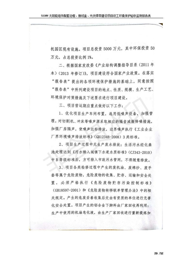 500MW太陽能組件配套邊框、接線盒、光伏焊帶建設(shè)項目竣工環(huán)境保護(hù)驗收監(jiān)測報告表公示