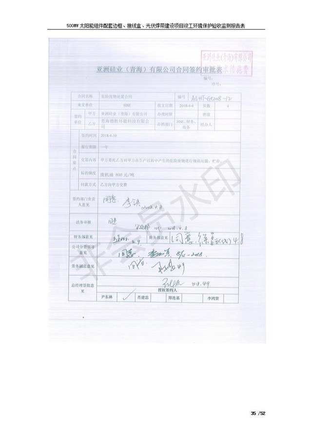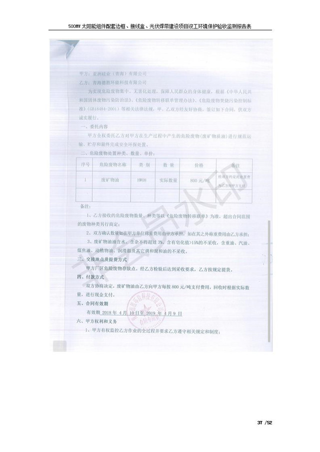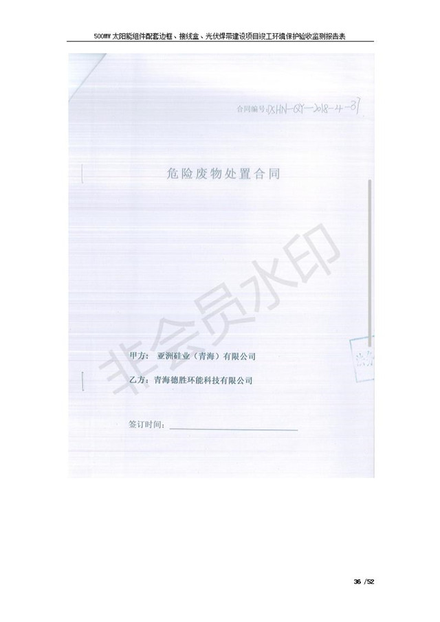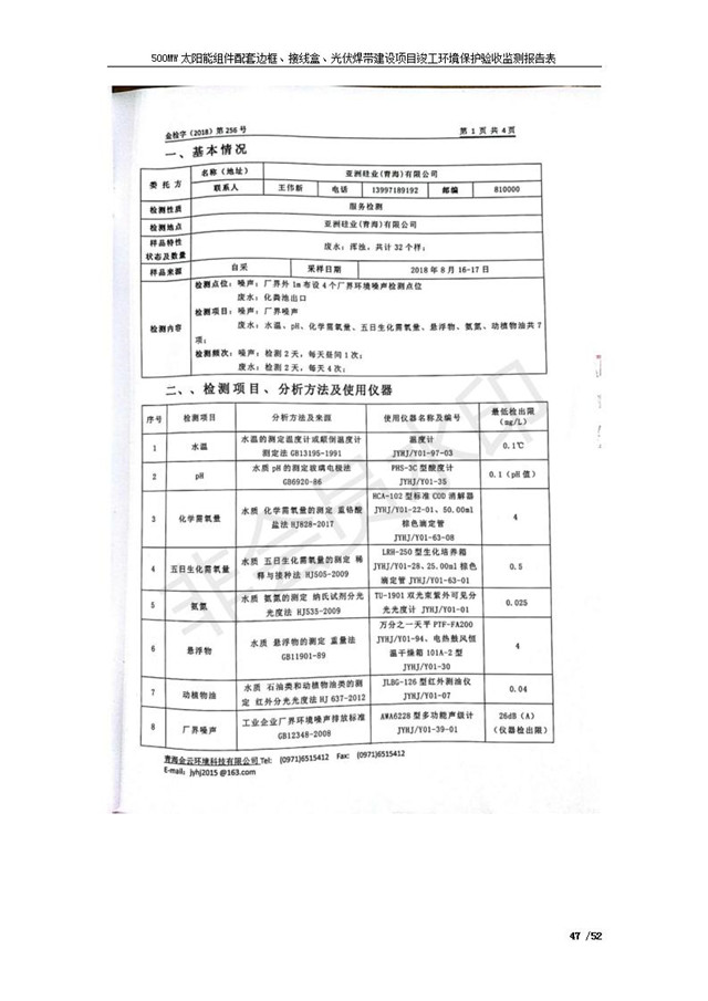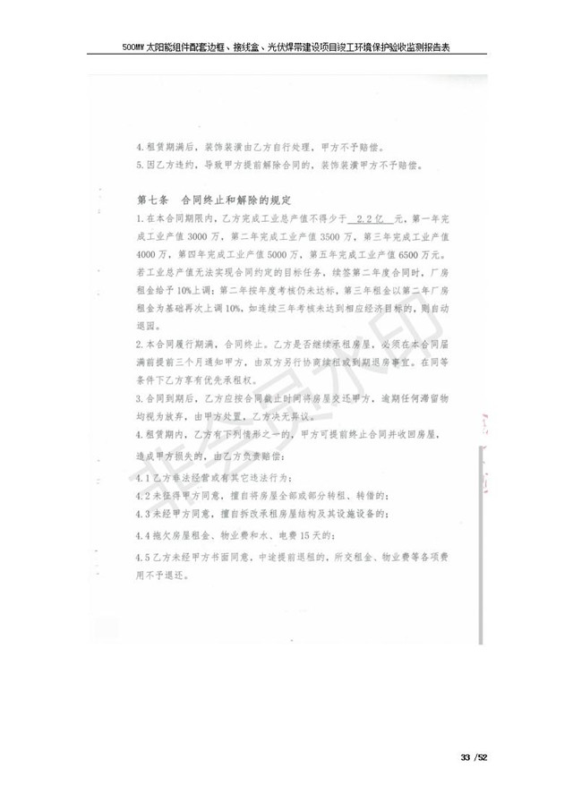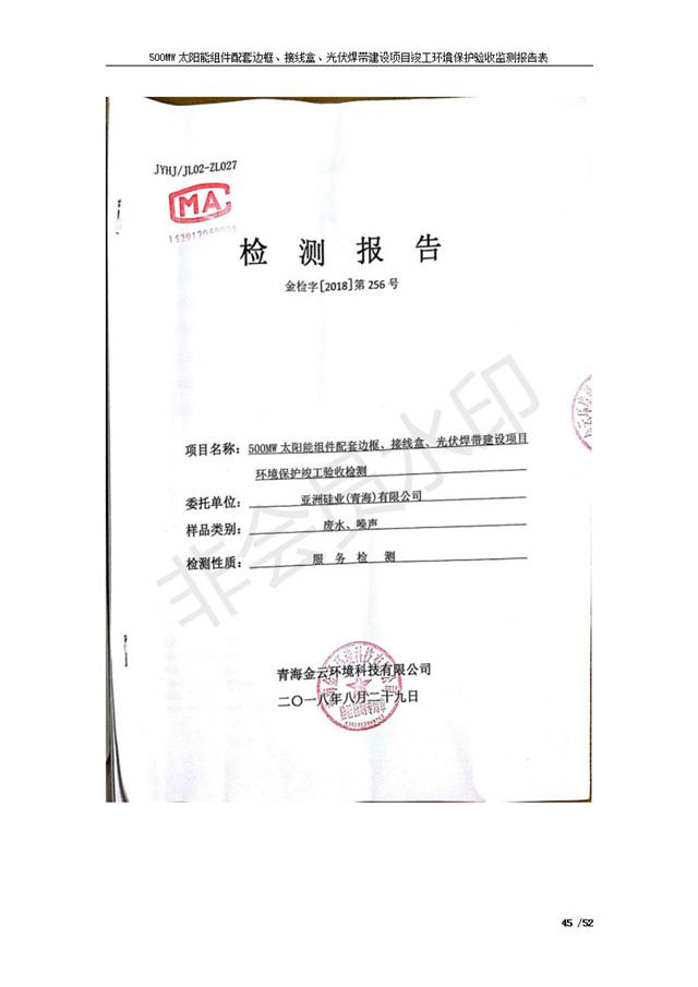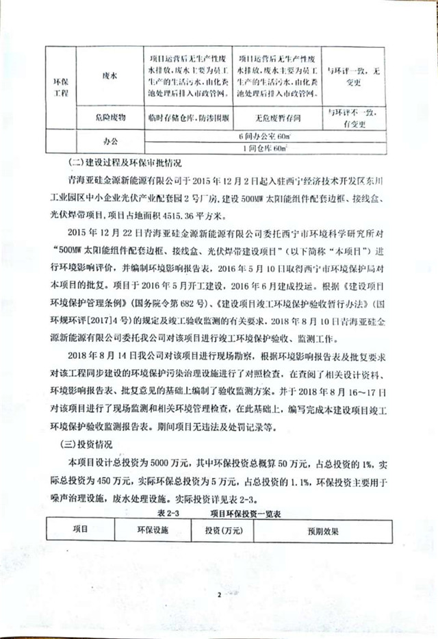500MW太陽能組件配套邊框、接線盒、光伏焊帶建設(shè)項目竣工環(huán)境保護(hù)驗收監(jiān)測報告表公示