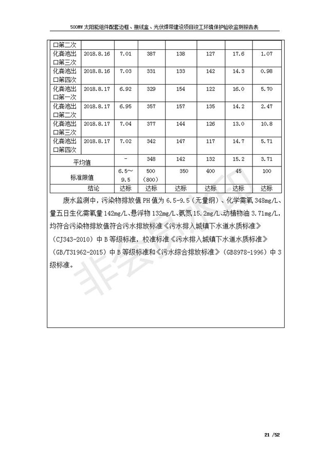 500MW太陽能組件配套邊框、接線盒、光伏焊帶建設(shè)項目竣工環(huán)境保護(hù)驗收監(jiān)測報告表公示發(fā)布日期:(2018-11-16) 點擊次數(shù):2214 |