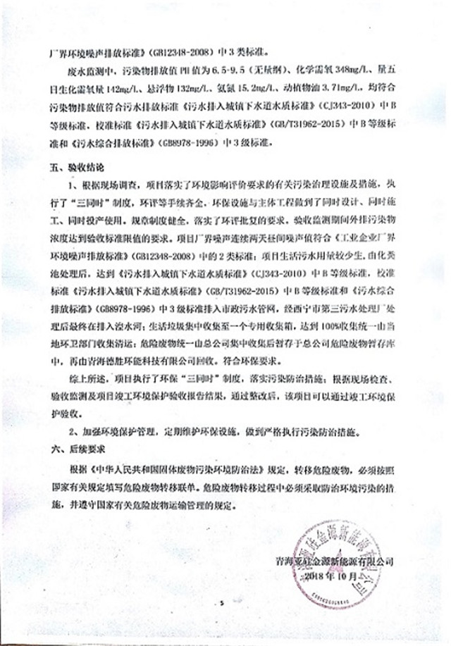 根據(jù)中華人民共和國國務(wù)院令第253號《建設(shè)項目環(huán)境保護(hù)管理條例》(中華人民共和國國務(wù)院令第682號《國務(wù)院關(guān)于修改〈建設(shè)項目環(huán)境保護(hù)管理條例〉的決定》和《建設(shè)項目竣工環(huán)境保護(hù)驗收暫行辦法》,嚴(yán)格依照有關(guān)法律法規(guī),建設(shè)項目環(huán)境保護(hù)設(shè)施驗收技術(shù)規(guī)范,本項目環(huán)評報告表和環(huán)保審批部門審批意見以及企業(yè)自行驗收相關(guān)要求等對本項目進(jìn)行驗收,本項目符合環(huán)保驗收條件,可以通過環(huán)保驗收。 現(xiàn)將本項目竣工環(huán)境保護(hù)驗收情況進(jìn)行公開,并征求公眾意見。一、征求意見日期:自公示之日起20個工作日 二、征求意見期間,驗收組接受反映公示的建設(shè)項目竣工環(huán)境保護(hù)驗收情況和問題的來信、來訪和來電。 三、聯(lián)系方式 聯(lián)系人:張工 電 話:15297122093 通訊地址:青海省西寧市城北區(qū)經(jīng)四路創(chuàng)新創(chuàng)業(yè)大廈22號