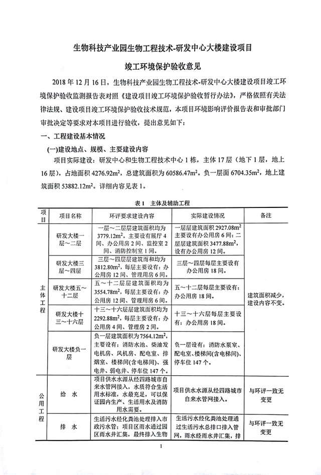 生物科技產(chǎn)業(yè)園生物工程技術(shù)-研發(fā)中心大樓建設(shè)項目竣工環(huán)境保護(hù)驗收監(jiān)測報告表公示