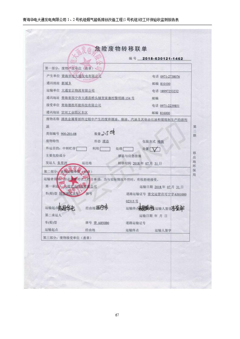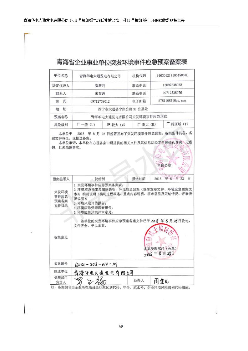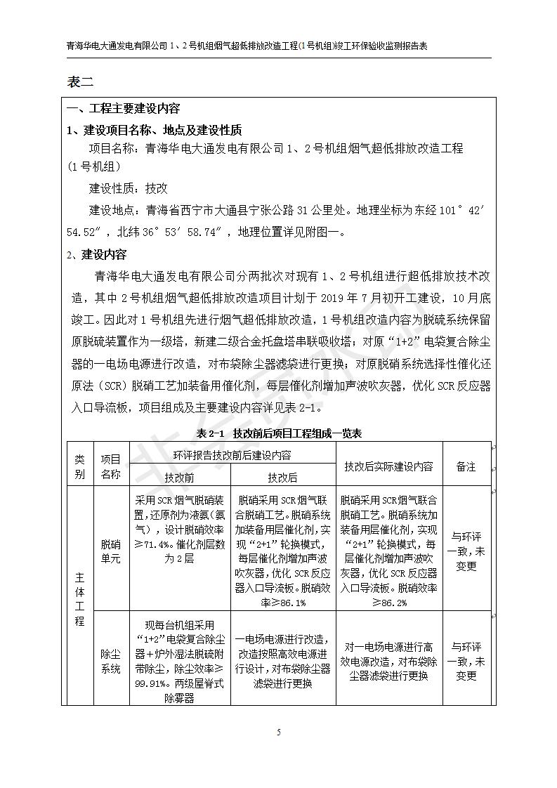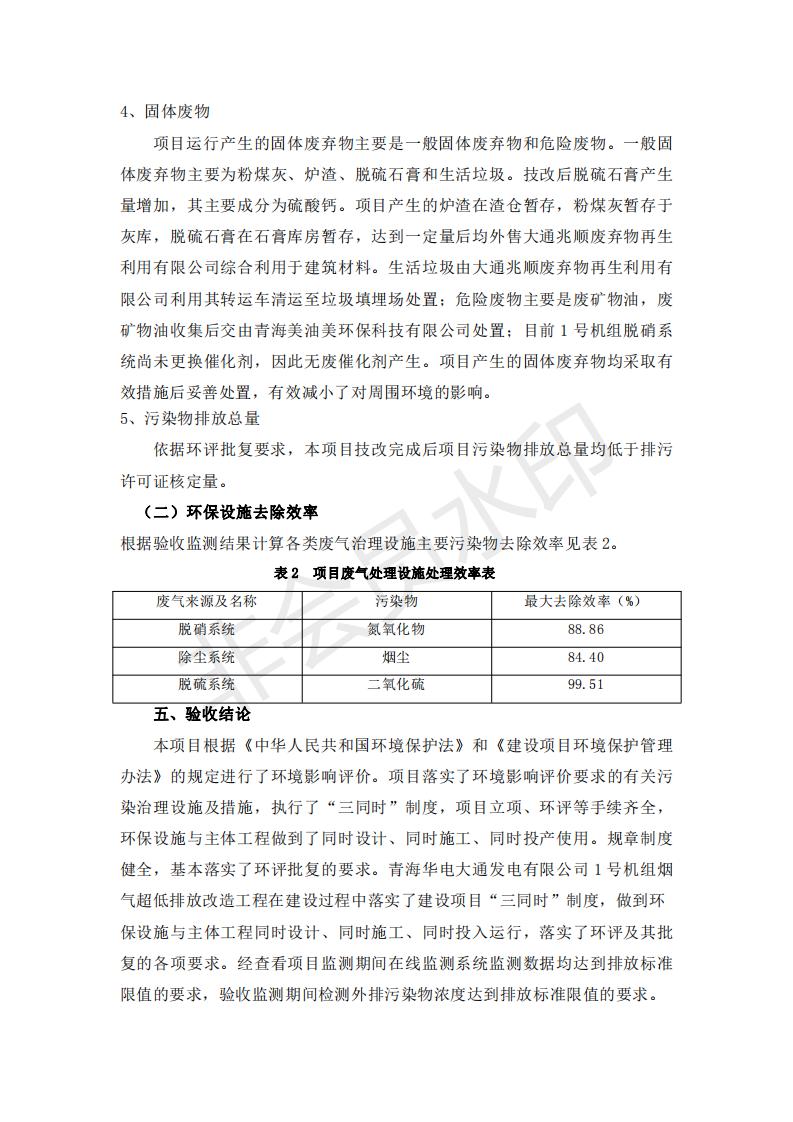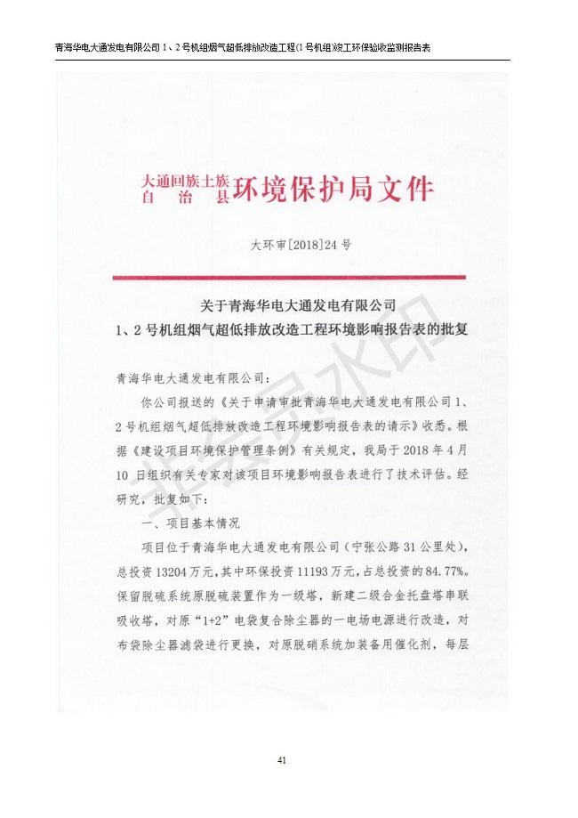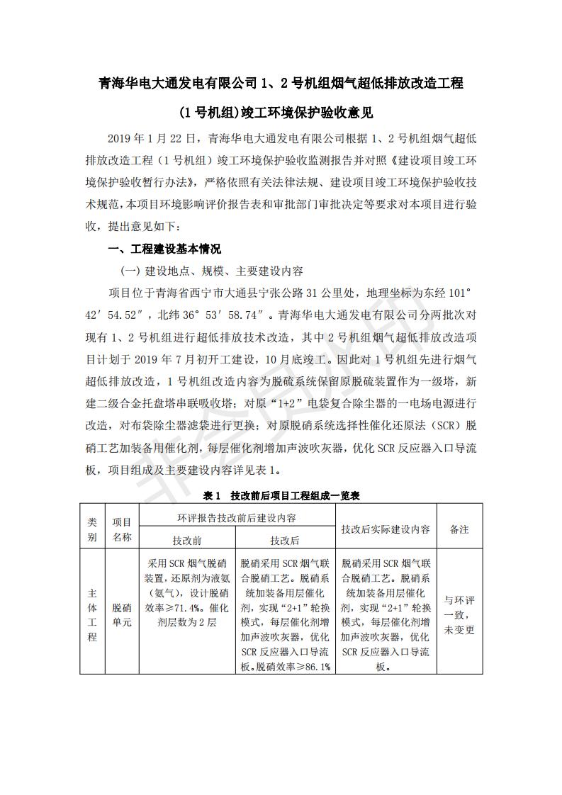 根據(jù)中華人民共和國國務院令第682號《國務院關于修改〈建設項目環(huán)境保護管理條例〉的決定》和《建設項目竣工環(huán)境保護驗收暫行辦法》(國務院令682號),青海華電大通發(fā)電有限公司1、2號機組煙氣超低排放改造工程(1號機組) (包括竣工環(huán)境保護驗收監(jiān)測報告表和驗收意見)公示如下。 一、項目名稱:青海華電大通發(fā)電有限公司1、2號機組煙氣超低排放改造工程(1號機組) 竣工環(huán)境保護驗收監(jiān)測報告表 二、地點:青海省西寧市大通縣寧張公路31公里處 三、建設單位:青海華電大通發(fā)電有限公司 四、建設內(nèi)容:1號機組煙氣超低排放改造,1號機組改造內(nèi)容為脫硫系統(tǒng)保留原脫硫裝置作為一級塔,新建二級合金托盤塔串聯(lián)吸收塔;對原“1+2”電袋復合除塵器的一電場電源進行改造,對布袋除塵器濾袋進行更換;對原脫硝系統(tǒng)選擇性催化還原法(SCR)脫硝工藝加裝備用催化劑,每層催化劑增加聲波吹灰器,優(yōu)化SCR反應器入口導流板。 五、聯(lián)系人:張工 六、聯(lián)系電 話:0971-6515411 七、公示時間:二〇一九年二月十三日至二〇一九年三月十二日 公示期間,對上述公示內(nèi)容如有異議,請以書面形式反饋,個人須署真實姓名,單位須加蓋公章。