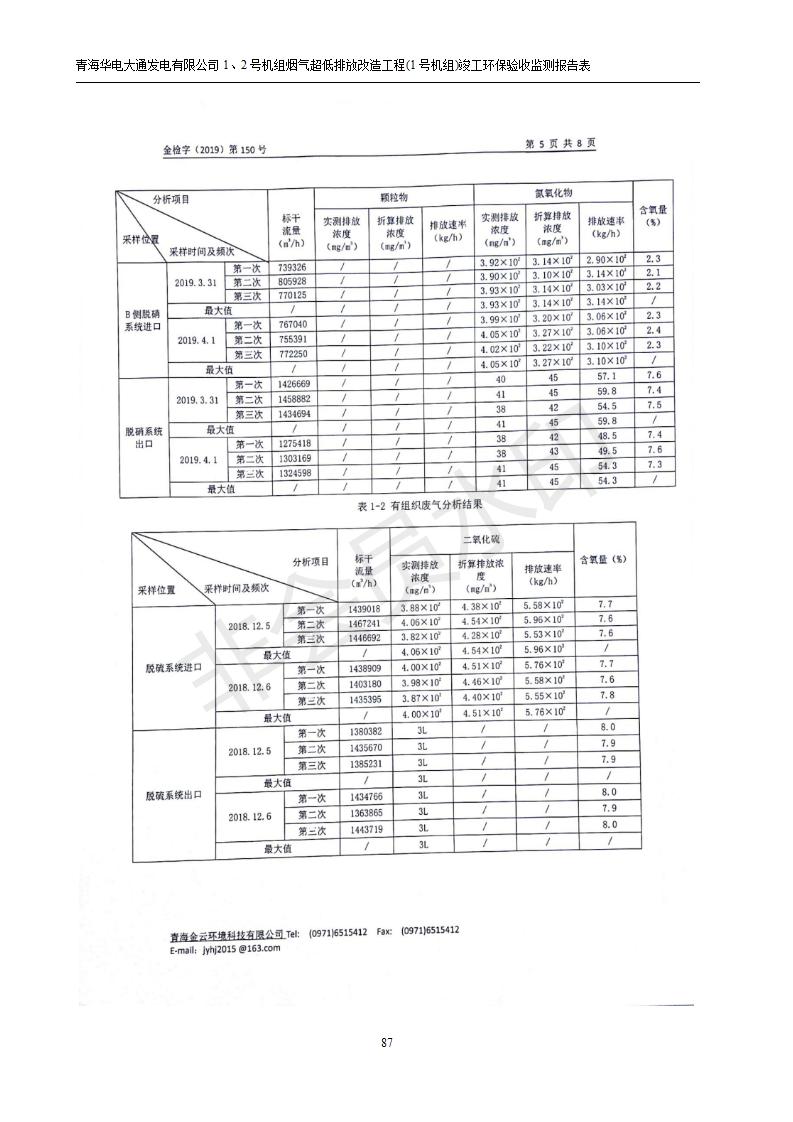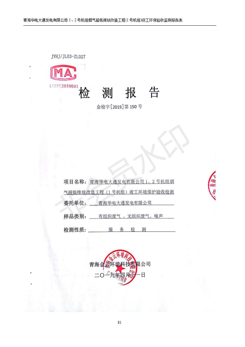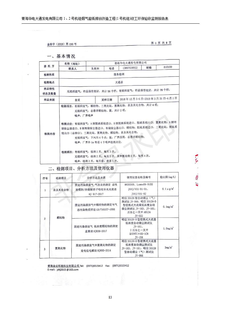 青海華電大通發(fā)電有限公司1、2號機組煙氣超低排放改造工程(1號機組) 竣工環(huán)境保護驗收監(jiān)測報告表公示發(fā)布日期:(2019-2-13) 點擊次數(shù):2693 |