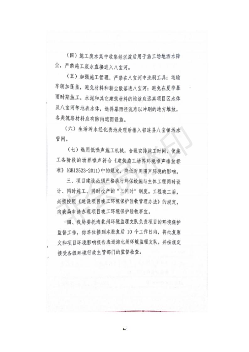 根據(jù)中華人民共和國務(wù)院令第682號《國務(wù)院關(guān)于修改〈建設(shè)項(xiàng)目環(huán)境保護(hù)管理?xiàng)l例〉的決定》和《建設(shè)項(xiàng)目竣工環(huán)境保護(hù)驗(yàn)收暫行辦法》(國務(wù)院令682號),祁連縣二寺灘公園項(xiàng)目竣工環(huán)境保護(hù)驗(yàn)收內(nèi)容(包括竣工環(huán)境保護(hù)驗(yàn)收調(diào)查表和驗(yàn)收意見)公示如下。 一、項(xiàng)目名稱:祁連縣二寺灘公園項(xiàng)目竣工環(huán)境保護(hù)驗(yàn)收調(diào)查表 二、地點(diǎn):祁連縣八寶鎮(zhèn)城東生態(tài)組團(tuán)片區(qū) 三、建設(shè)單位:祁連縣環(huán)境保護(hù)和林業(yè)局 四、建設(shè)內(nèi)容:公園廣場入口、水景景觀、輔助工程、綠化建設(shè) 五、公示時間:二〇一九年三月十一日至二〇一九年四月八日 六、聯(lián)系人:張工 公示期間,對上述公示內(nèi)容如有異議,請以書面形式反饋,個人須署真實(shí)姓名,單位須加蓋公章。