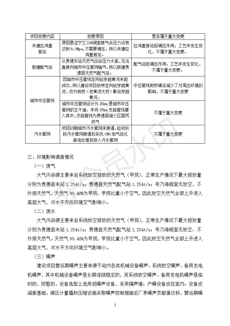 貴德縣城輸配管線工程竣工環(huán)境保護(hù)驗(yàn)收調(diào)查表公示