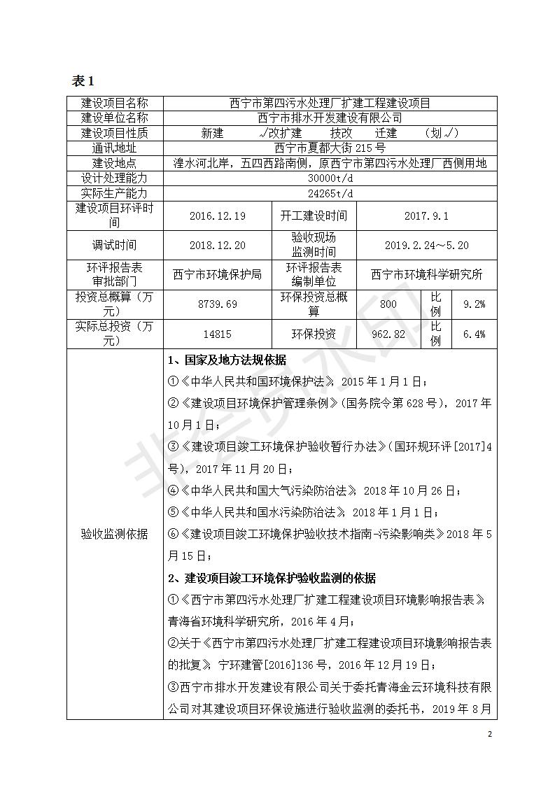 西寧市第四污水處理廠擴建工程建設(shè)項目竣工環(huán)境保護驗收監(jiān)測報告表公示發(fā)布日期:(2019-9-17) 點擊次數(shù):2816 |
