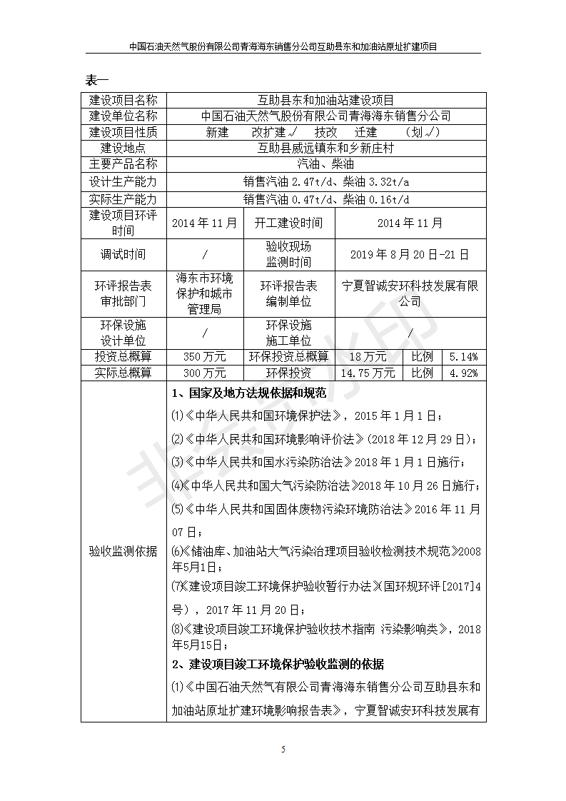互助縣東和加油站原址擴(kuò)建項(xiàng)目 竣工環(huán)境保護(hù)驗(yàn)收監(jiān)測(cè)報(bào)告表公示發(fā)布日期:(2019-9-27) 點(diǎn)擊次數(shù):2531 |