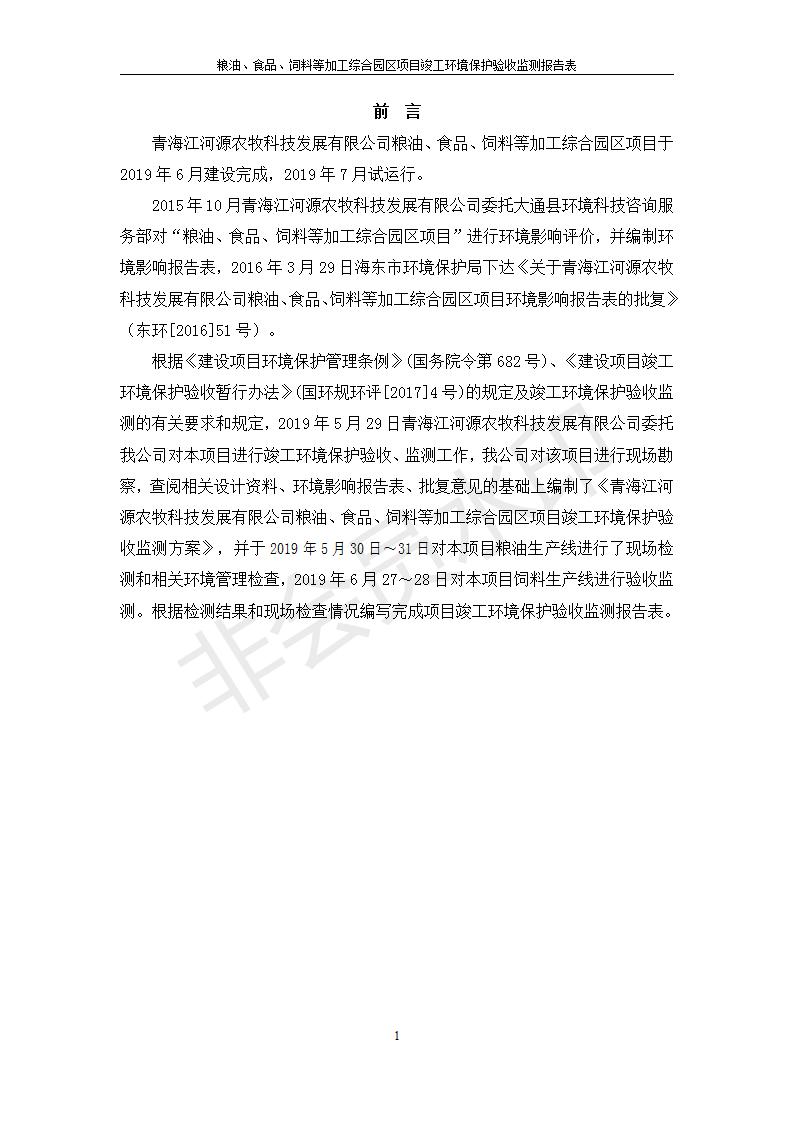 根據(jù)中華人民共和國國務(wù)院令第682號《國務(wù)院關(guān)于修改〈建設(shè)項(xiàng)目環(huán)境保護(hù)管理?xiàng)l例〉的決定》和《建設(shè)項(xiàng)目竣工環(huán)境保護(hù)驗(yàn)收暫行辦法》(國務(wù)院令682號),糧油、食品、飼料等加工綜合園區(qū)項(xiàng)目竣工環(huán)境保護(hù)驗(yàn)收監(jiān)測報(bào)告表(包括竣工環(huán)境保護(hù)驗(yàn)收監(jiān)測報(bào)告表和驗(yàn)收意見)公示如下。 一、項(xiàng)目名稱:糧油、食品、飼料等加工綜合園區(qū)項(xiàng)目 二、地點(diǎn):河湟新區(qū)(海東工業(yè)園區(qū)臨空綜合經(jīng)濟(jì)園) 六、聯(lián)系電話:0971-6515411 七、公示時(shí)間:二〇一九年十月九日至二〇一九年十一月五日 公示期間,對上述公示內(nèi)容如有異議,請以書面形式反饋,個(gè)人須署真實(shí)姓名,單位須加蓋公章。