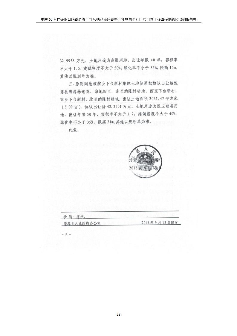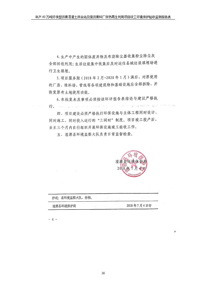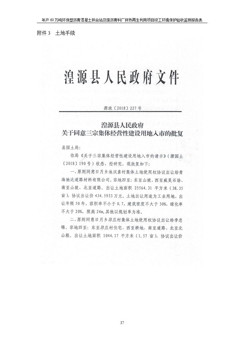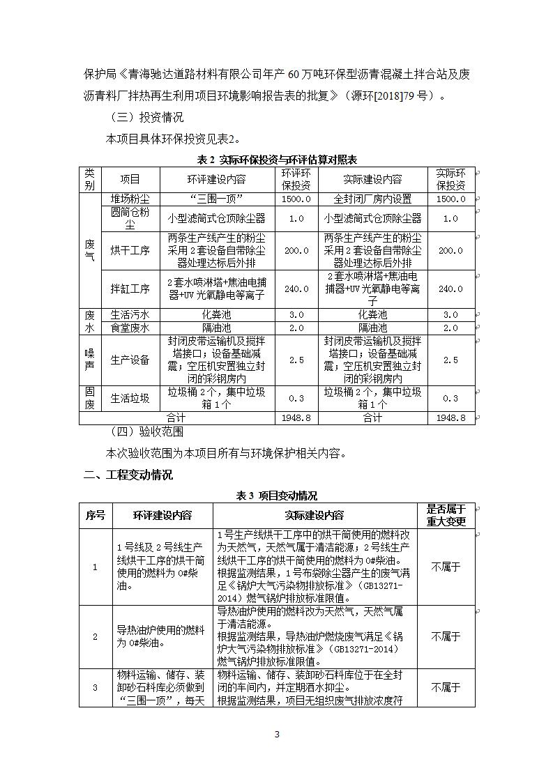 根據(jù)中華人民共和國國務(wù)院令第682號《國務(wù)院關(guān)于修改〈建設(shè)項(xiàng)目環(huán)境保護(hù)管理?xiàng)l例〉的決定》和《建設(shè)項(xiàng)目竣工環(huán)境保護(hù)驗(yàn)收暫行辦法》(國務(wù)院令682號),青海馳達(dá)道路材料有限公司年產(chǎn)60萬噸環(huán)保型瀝青混凝土拌合站及廢瀝青料廠拌熱再生利用項(xiàng)目竣工環(huán)境保護(hù)驗(yàn)收監(jiān)測報(bào)告表公示如下。 一、項(xiàng)目名稱:年產(chǎn)60萬噸環(huán)保型瀝青混凝土拌合站及廢瀝青料廠拌熱再生利用項(xiàng)目竣工環(huán)境保護(hù)驗(yàn)收監(jiān)測報(bào)告表 二、地點(diǎn):湟源縣日月藏族鄉(xiāng)池漢素村 三、建設(shè)單位:青海馳達(dá)道路材料有限公司 四、建設(shè)內(nèi)容:本項(xiàng)目共有2條瀝青砼生產(chǎn)線及1條穩(wěn)定土生產(chǎn)線,配套辦公樓等。 五、聯(lián)系人:楊工 六、聯(lián)系電 話:0971-6515411 七、公示時(shí)間:二〇二〇年七月六日至二〇二〇年七月三十一日 公示期間,對上述公示內(nèi)容如有異議,請以書面形式反饋,個(gè)人須署真實(shí)姓名,單位須加蓋公章。